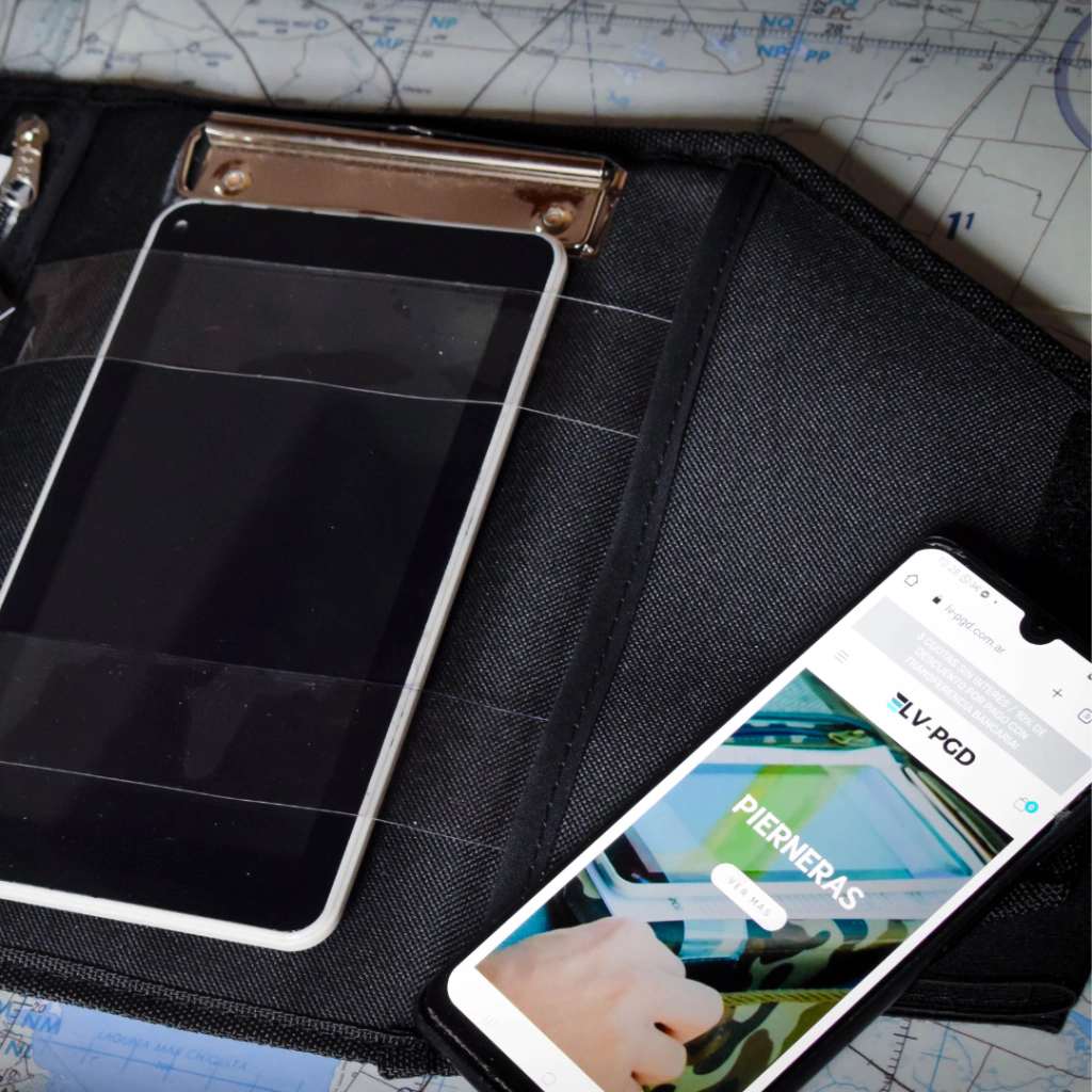 En su interior tiene un portablock A5 interno para sostener hojas pre computadas u otras de manera rígida, aparte tiene dos tiras transparentes para sostener (solo sujeta,no es soporte) tu iPad o tablet de hasta 17,5cm de ancho aprox (dependiendo del tamaño del dispositivo con el que la vas a usar); un bolsillo con cierre, 1 bolsillo para celular, 1 bolsillo red, porta lapicera extraíble para que lo uses cuando sea necesario,